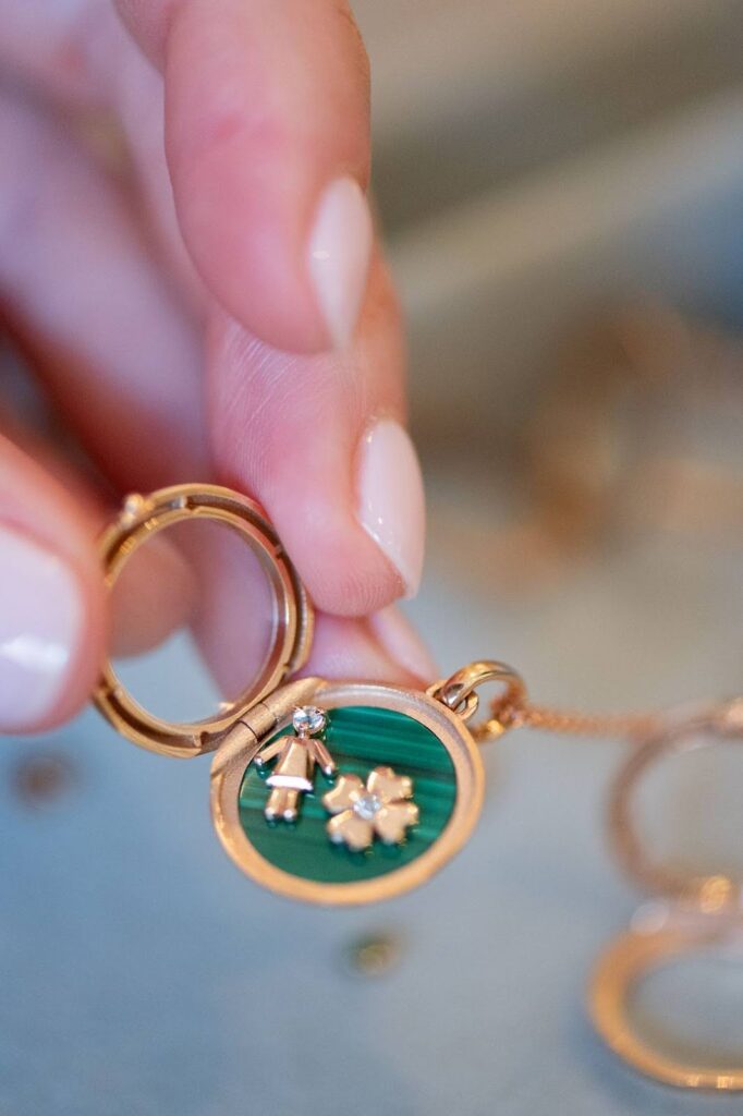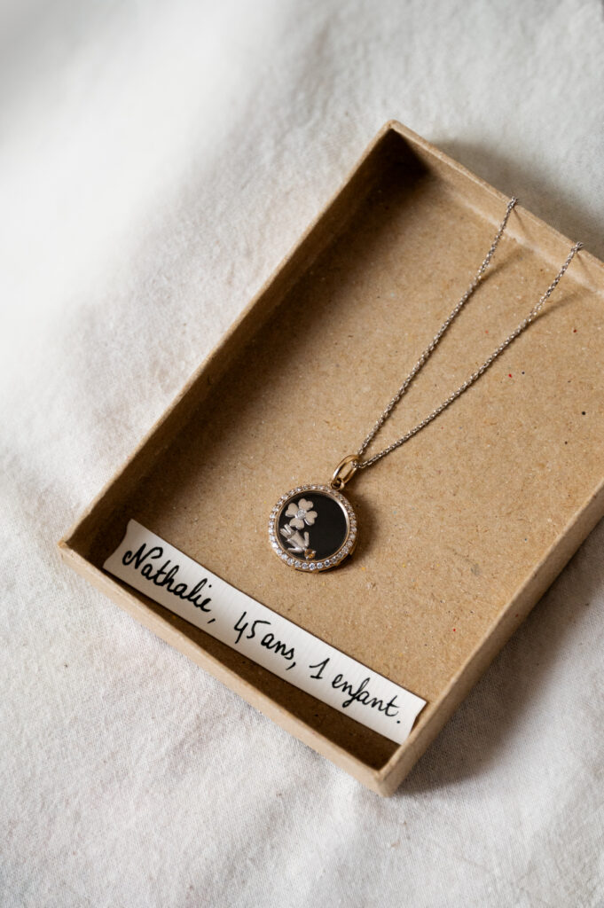 Mais nous savons aussi que votre histoire s’enrichit d’année en année, avec de nouveaux chapitres, de nouvelles naissances. C’est pourquoi nous avons pensé un médaillon évolutif, se transformant au gré de la vie et de vos envies. Il devient, à la demande, un véritable accessoire de mode qui s’accorde à vos tenues et vous accompagne en toutes circonstances.