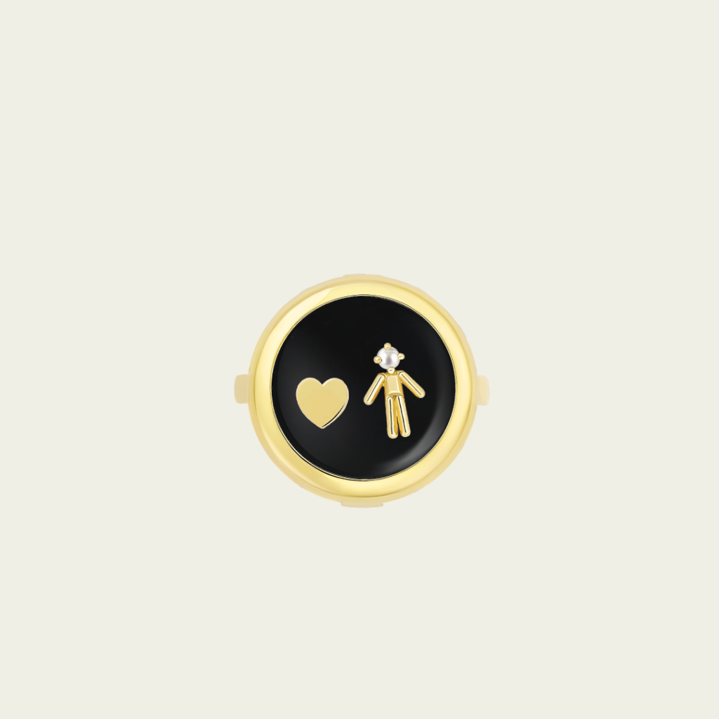 Bague médaillon coeur & garçon perle
