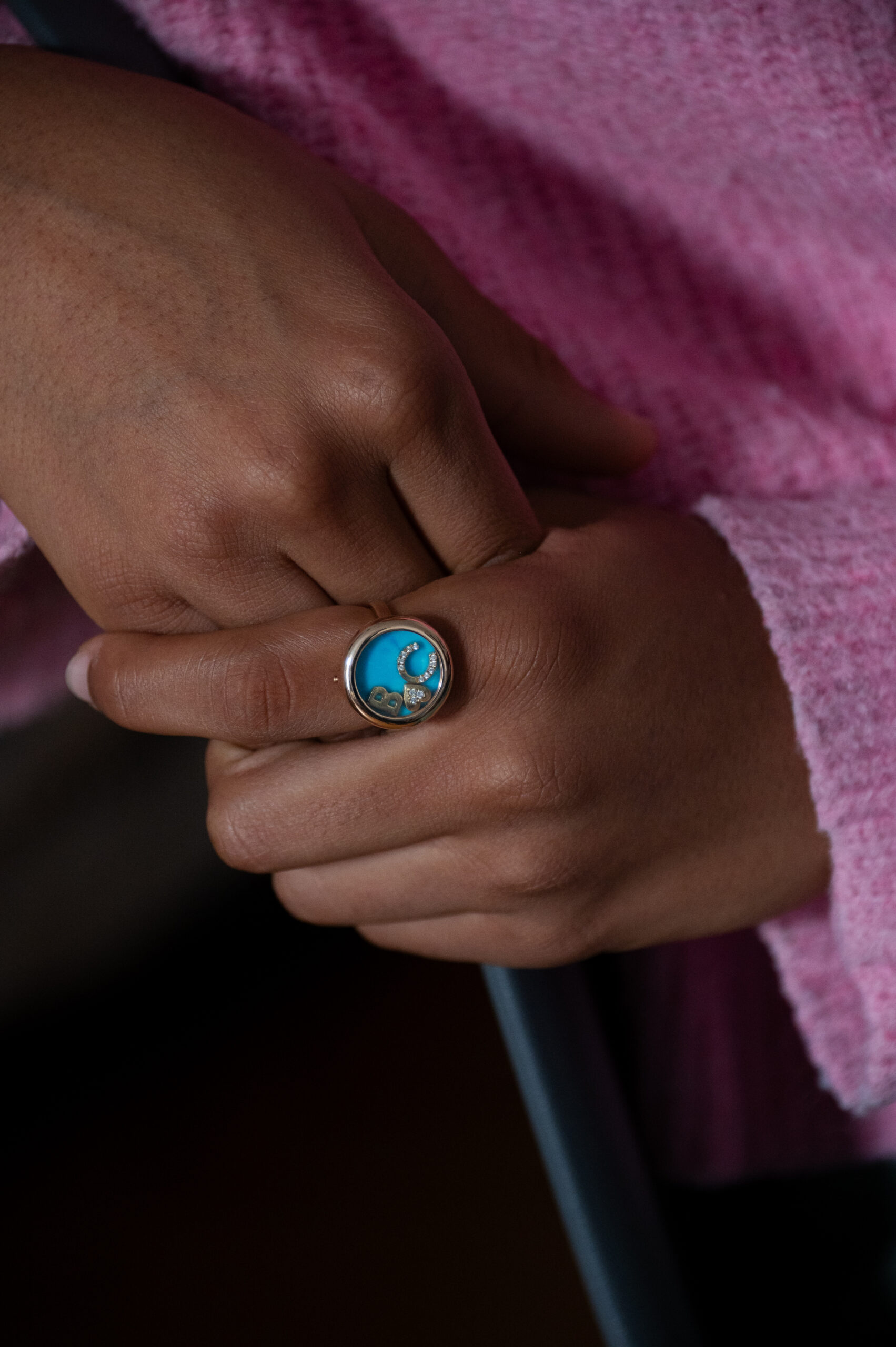 Bague Médaillon personnalisée en or jaune recyclé 18 cts avec :