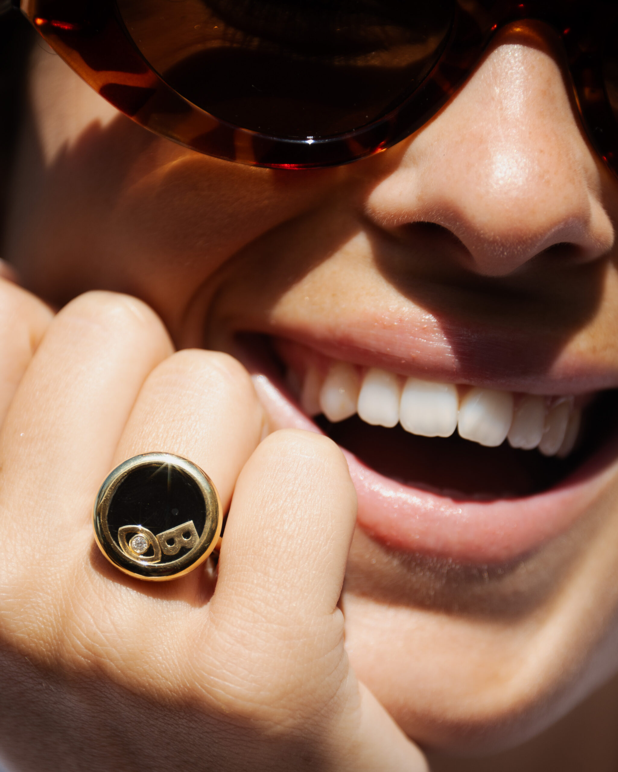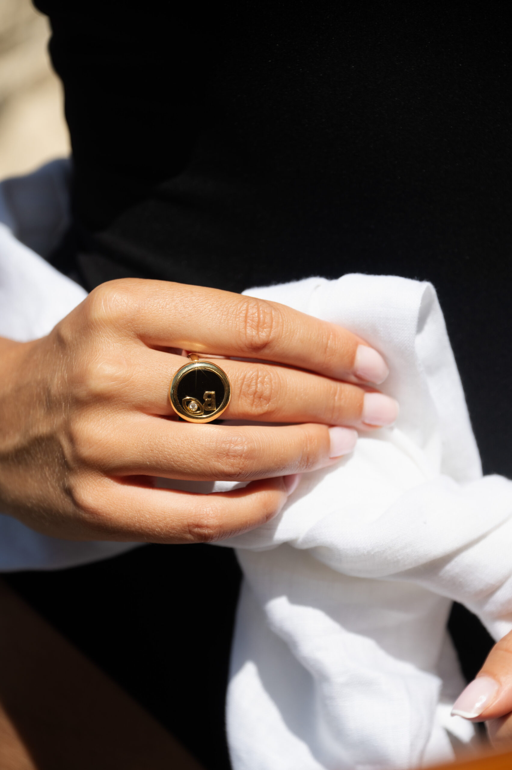Bague Médaillon personnalisée en or jaune recyclé 18 cts avec :