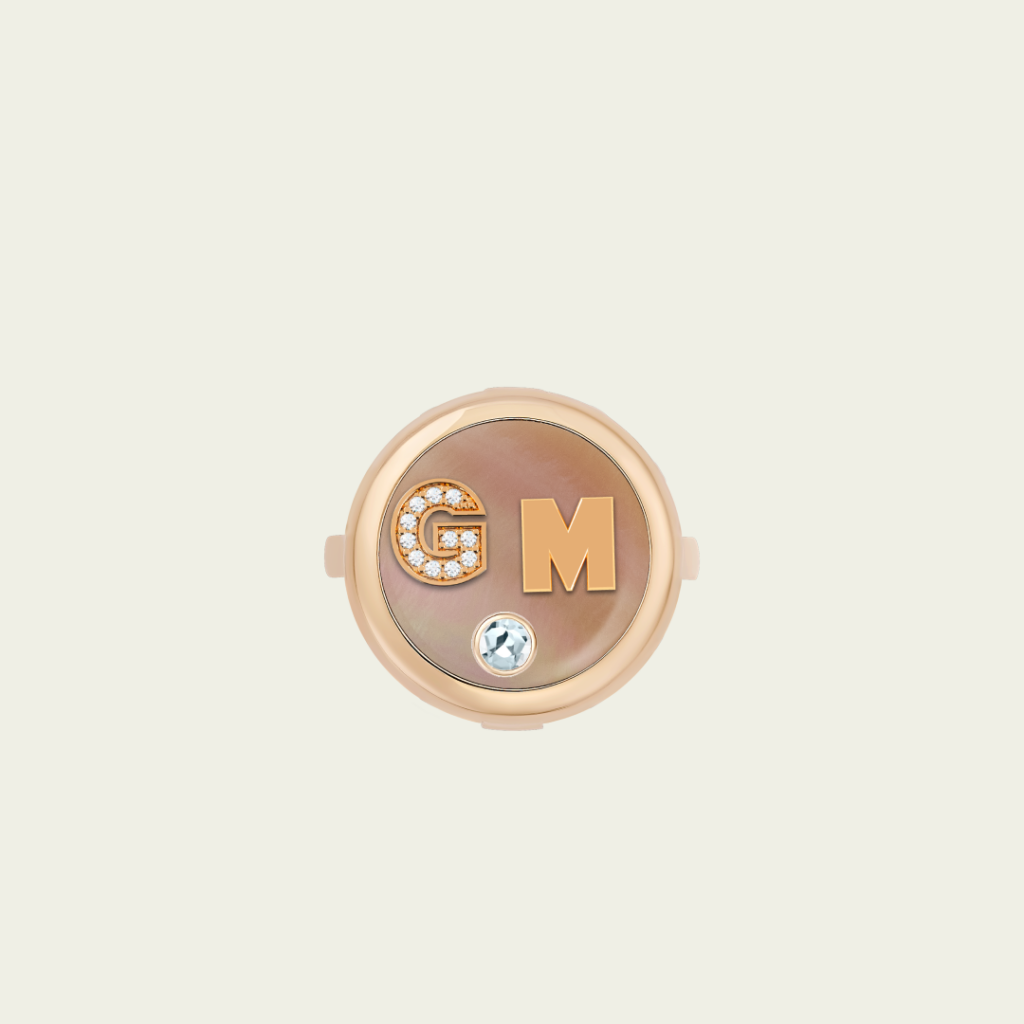Bague Médaillon personnalisée en or rose recyclé 18 cts avec :