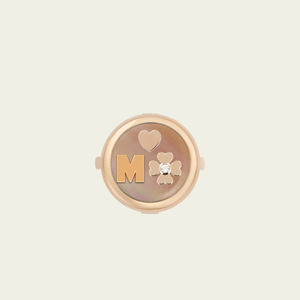 Bague médaillon trèfle & initiale