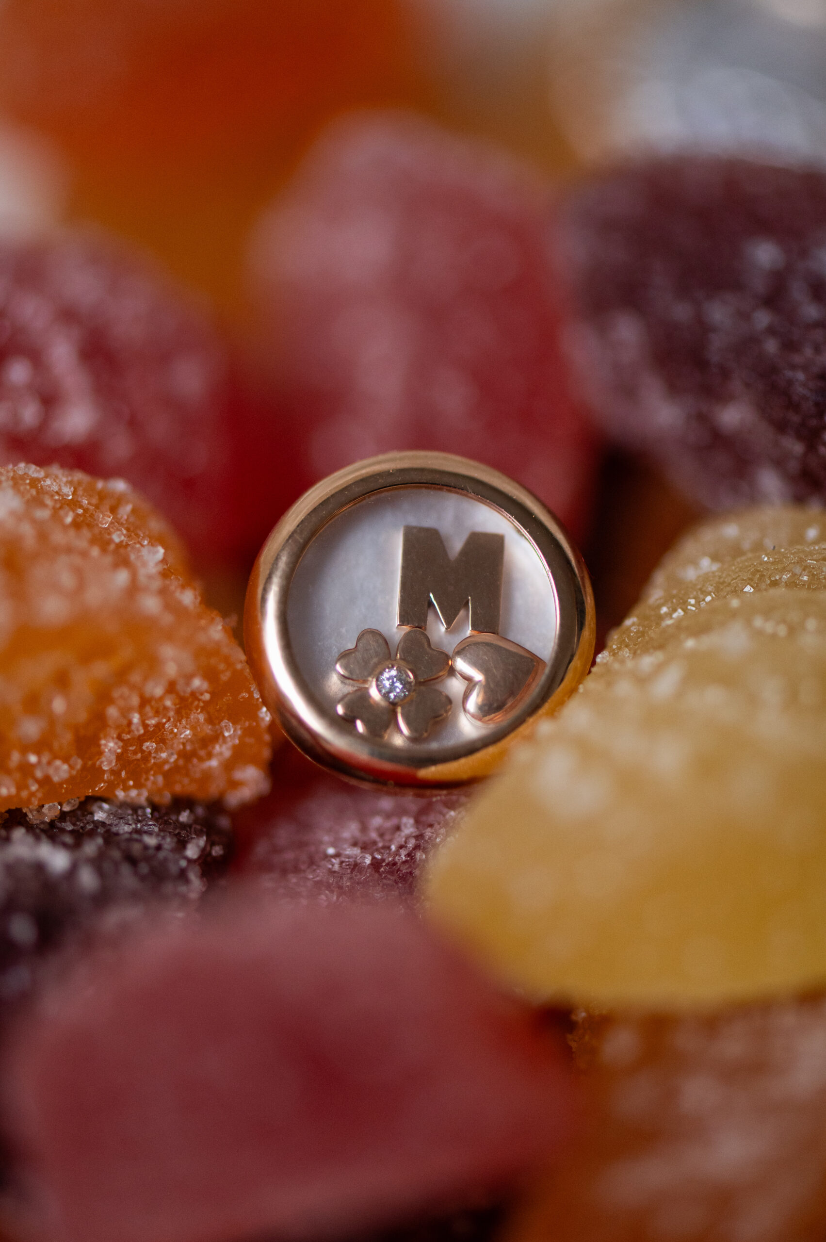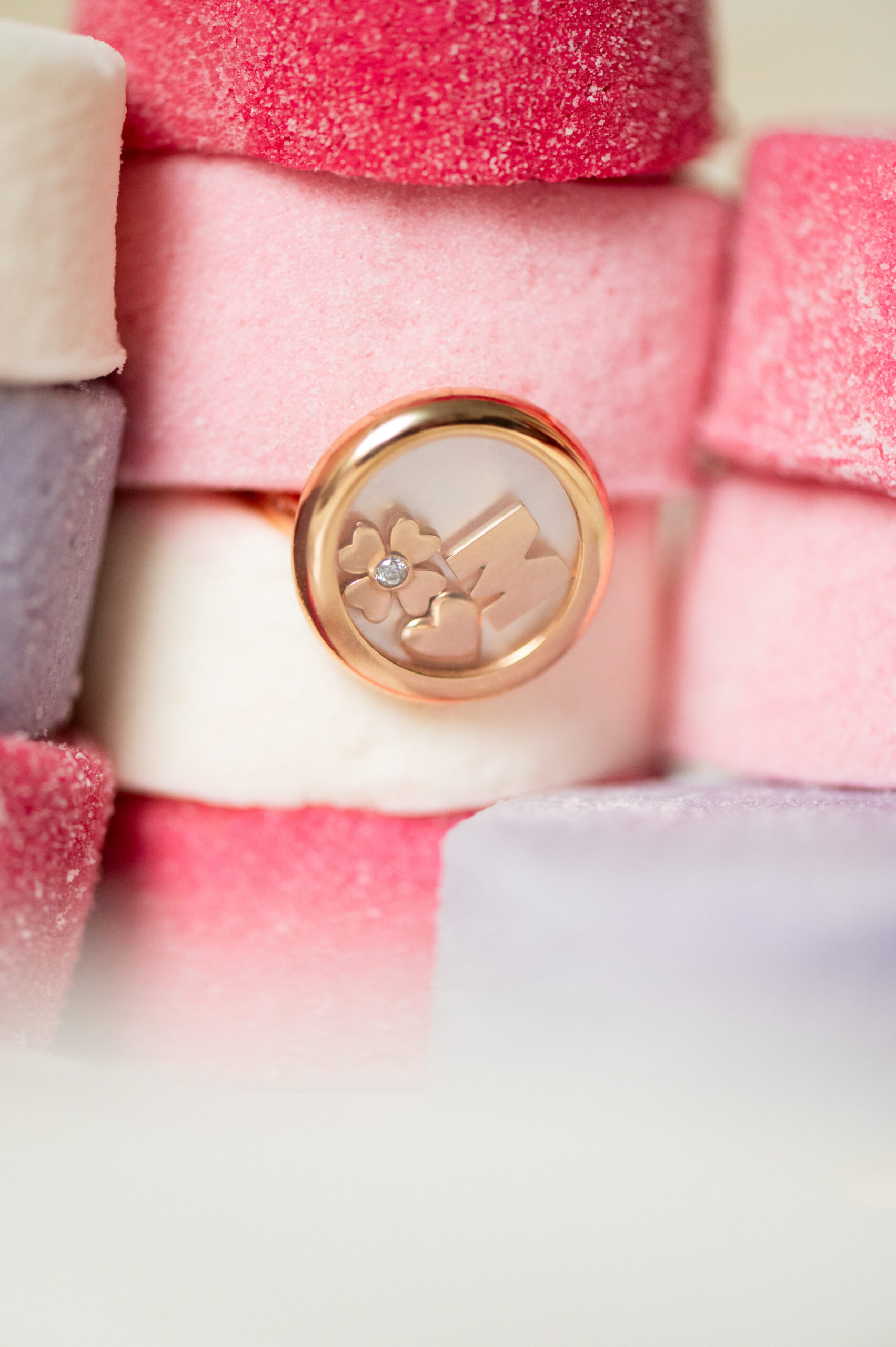 Bague Médaillon personnalisée en or rose recyclé 18 cts avec :
