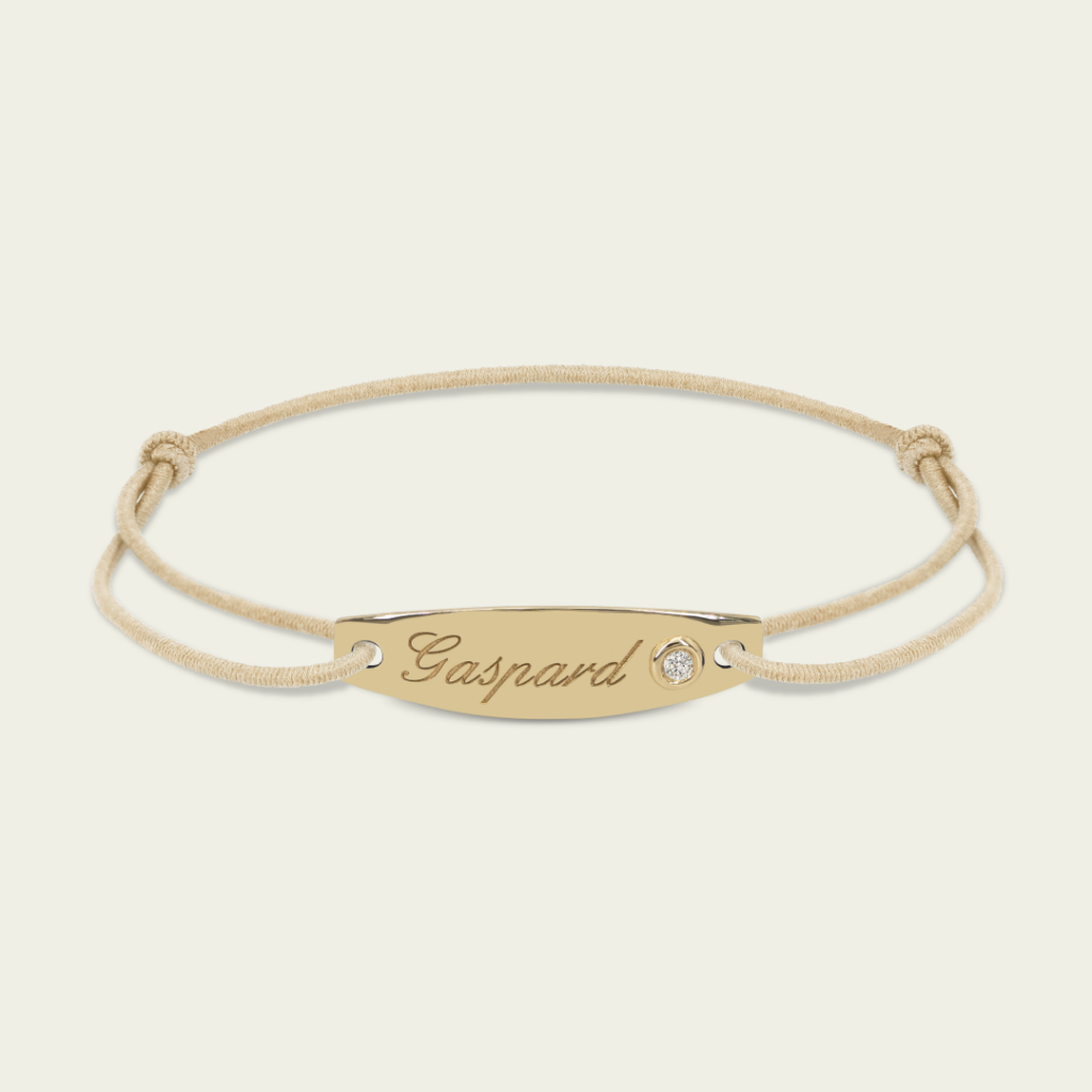 Cette gourmette sur cordon, à la fois légère et confortable, est pensée pour bébés et enfants et se transforme en un bijou unique grâce à sa personnalisation complète.