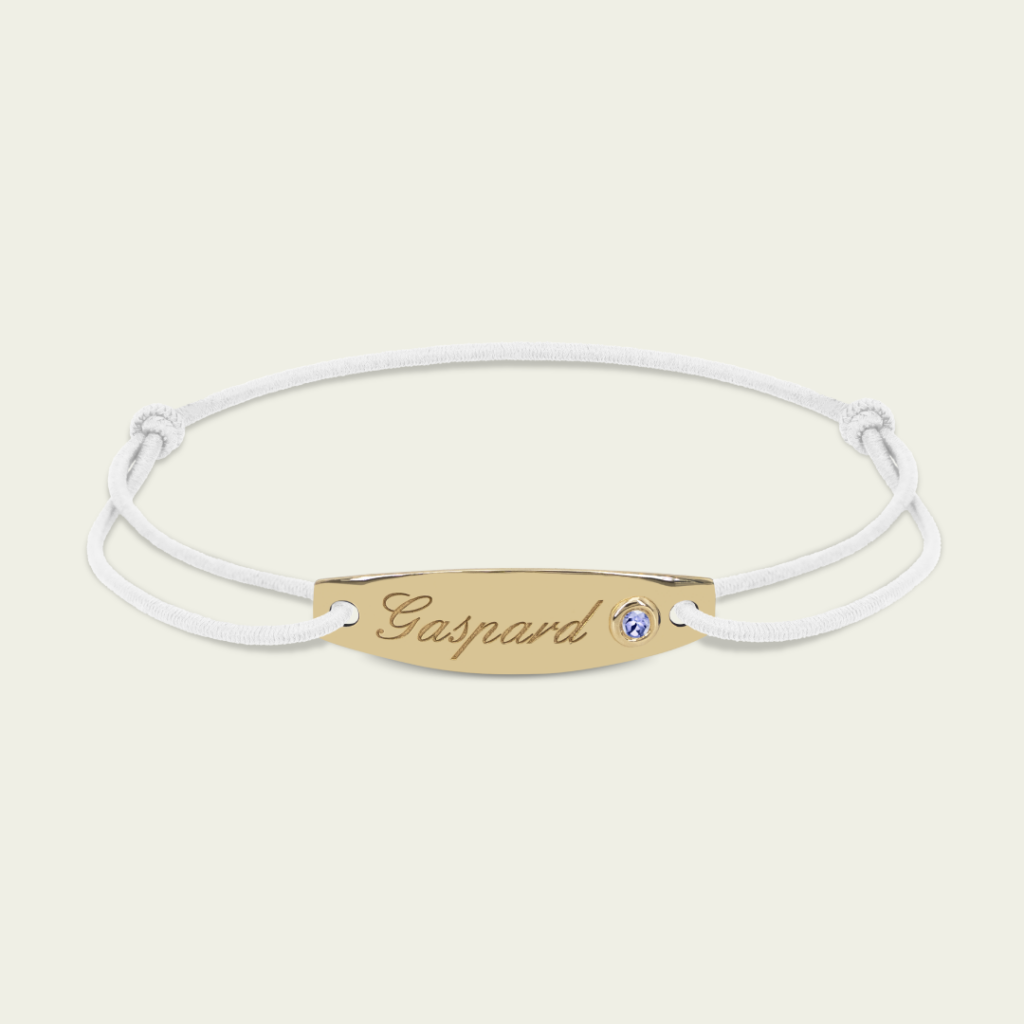 Cette gourmette sur cordon, à la fois légère et confortable, est pensée pour bébés et enfants et se transforme en un bijou unique grâce à sa personnalisation complète.