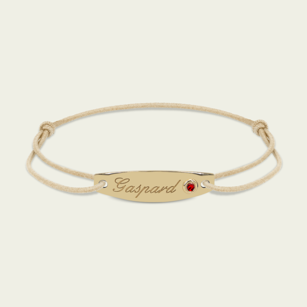 Cette gourmette sur cordon, à la fois légère et confortable, est pensée pour bébés et enfants et se transforme en un bijou unique grâce à sa personnalisation complète.