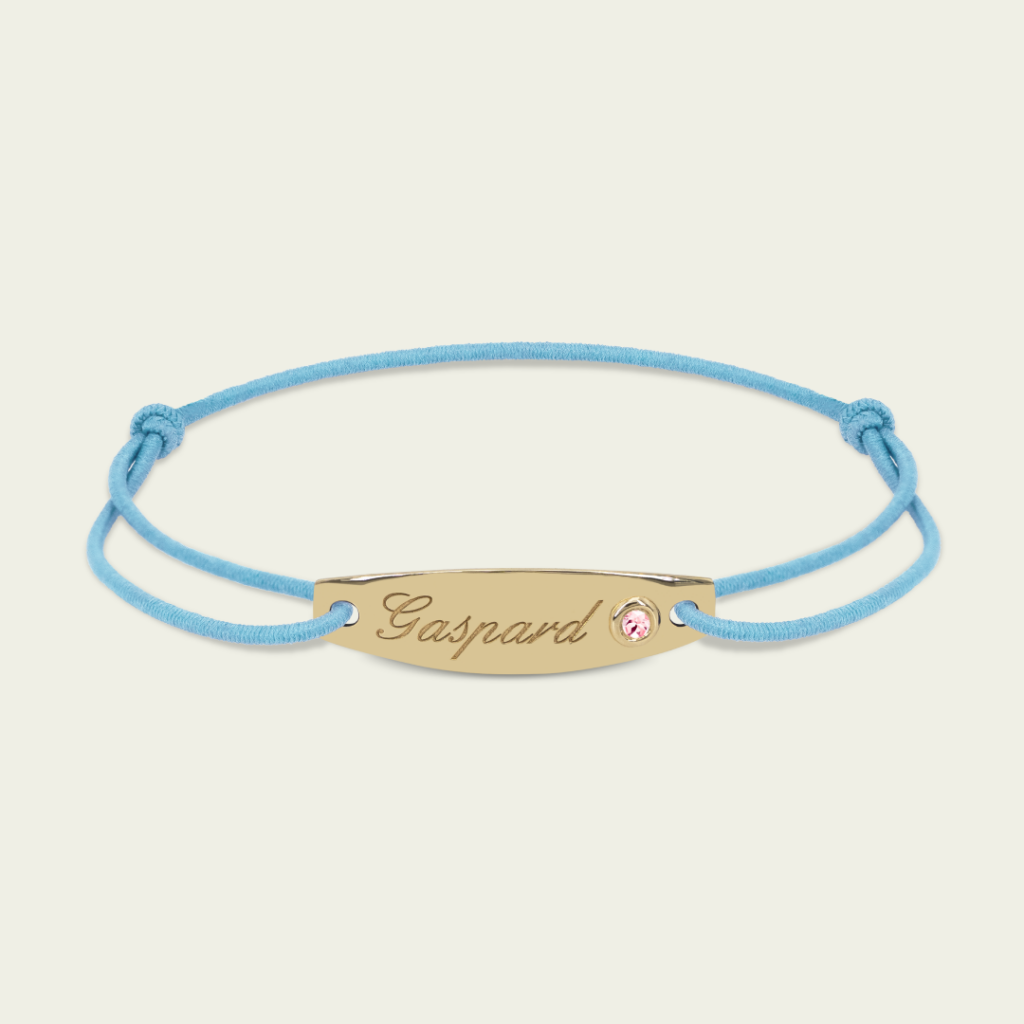 Cette gourmette sur cordon, à la fois légère et confortable, est pensée pour bébés et enfants et se transforme en un bijou unique grâce à sa personnalisation complète.