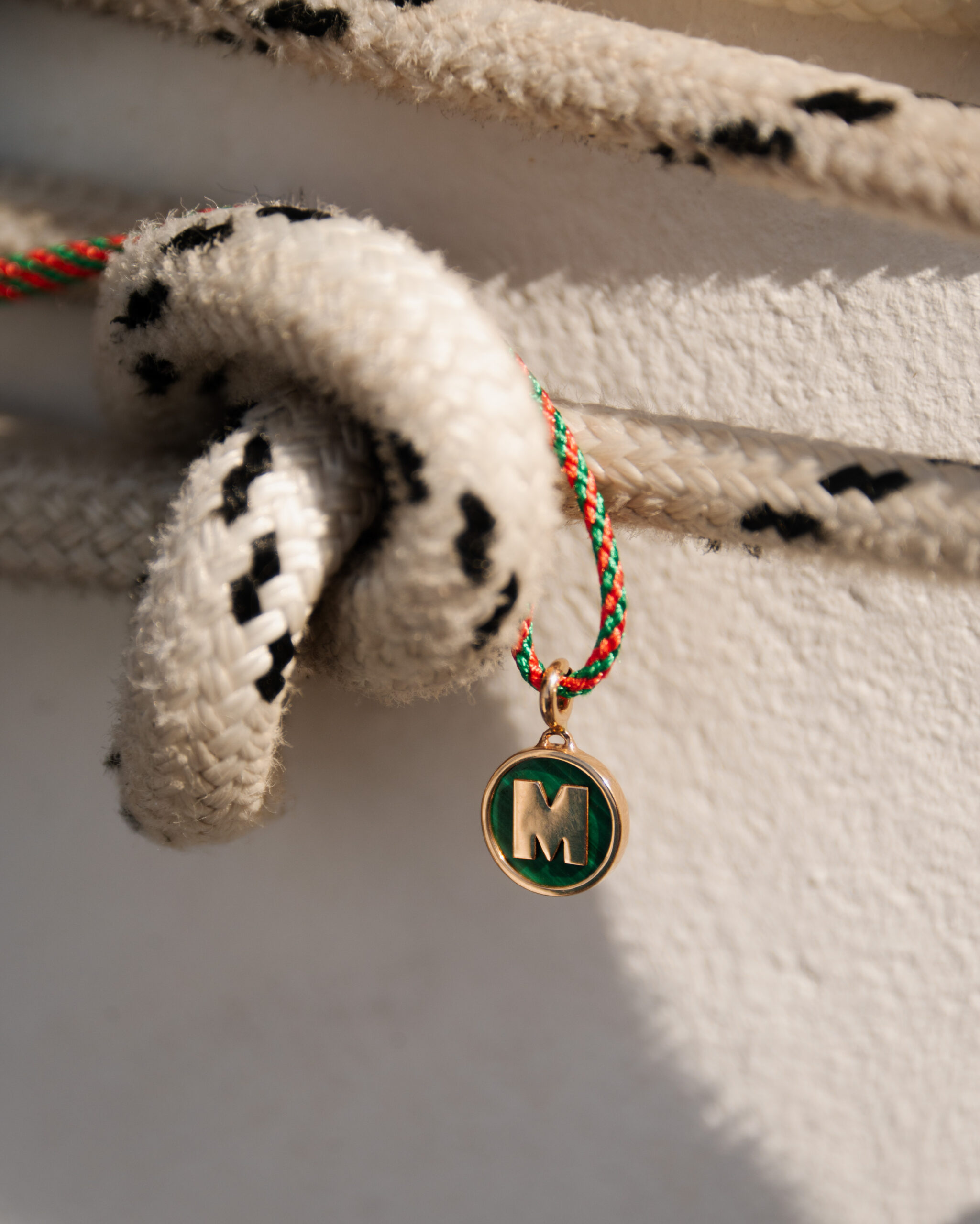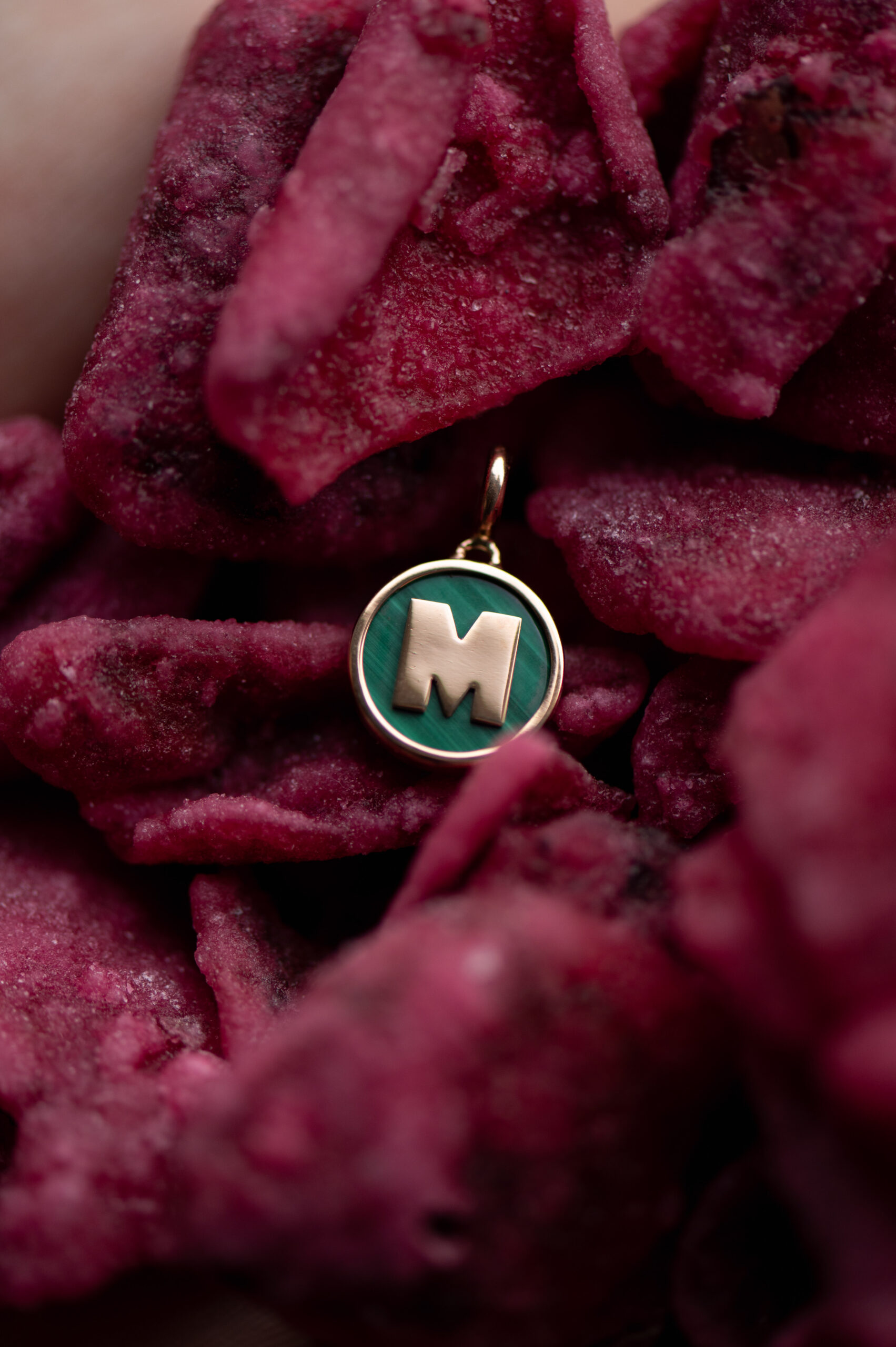 Médaille or jaune 18 cts pierre naissance, fonds malachite