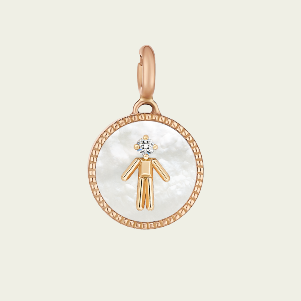 Médaille or rose 18 cts garçon diamant, fonds nacre