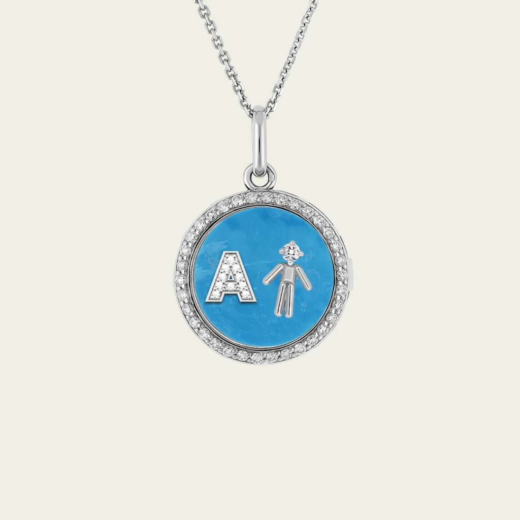 Médaillon or blanc 18 cts serti de diamants initiale diamant & garçon diamant