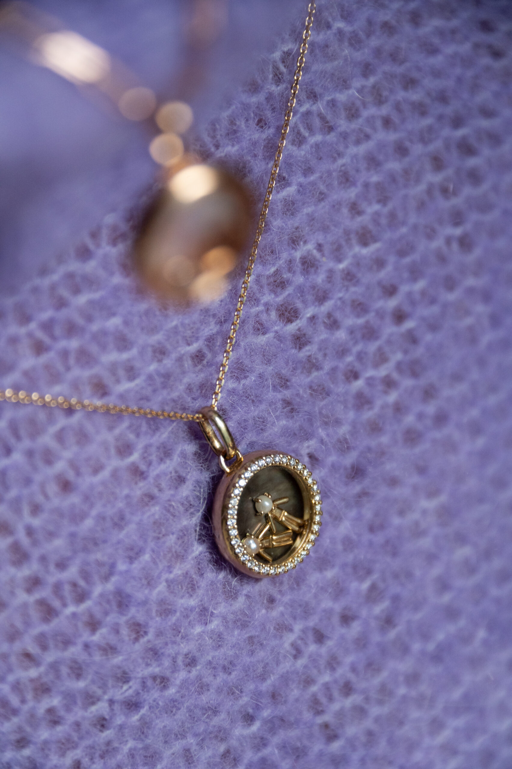 Pendentif Médaillon personnalisé en or jaune recyclé 18 cts serti de diamants avec :