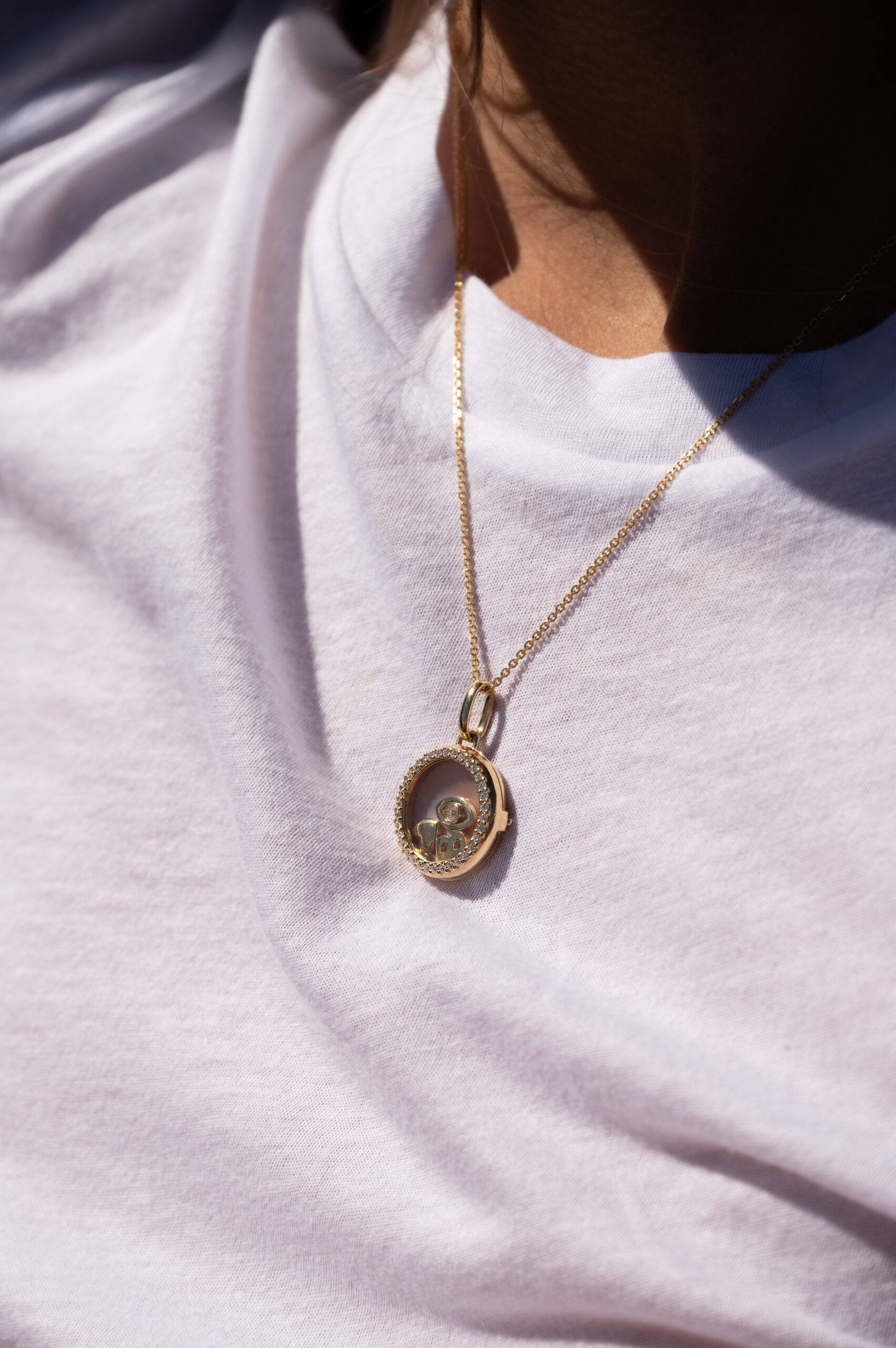 Médaillon serti de diamants initiale & oeil