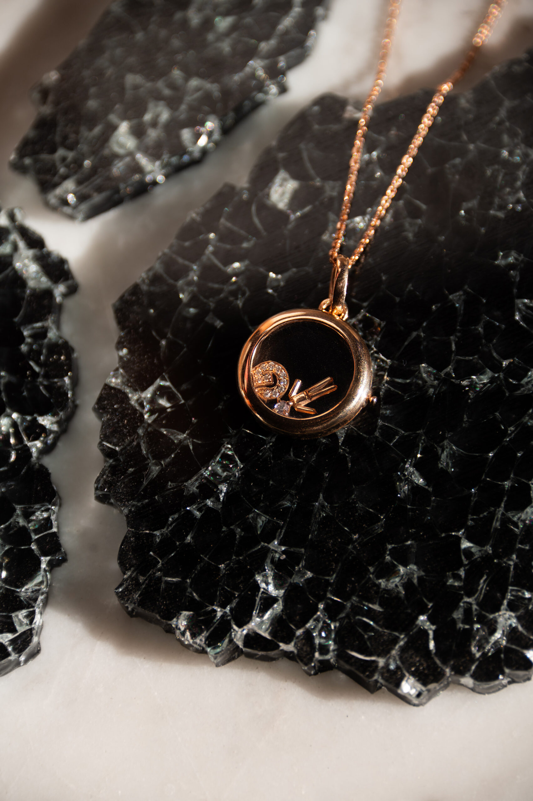 Pendentif Médaillon personnalisé en or rose recyclé 14 cts avec :